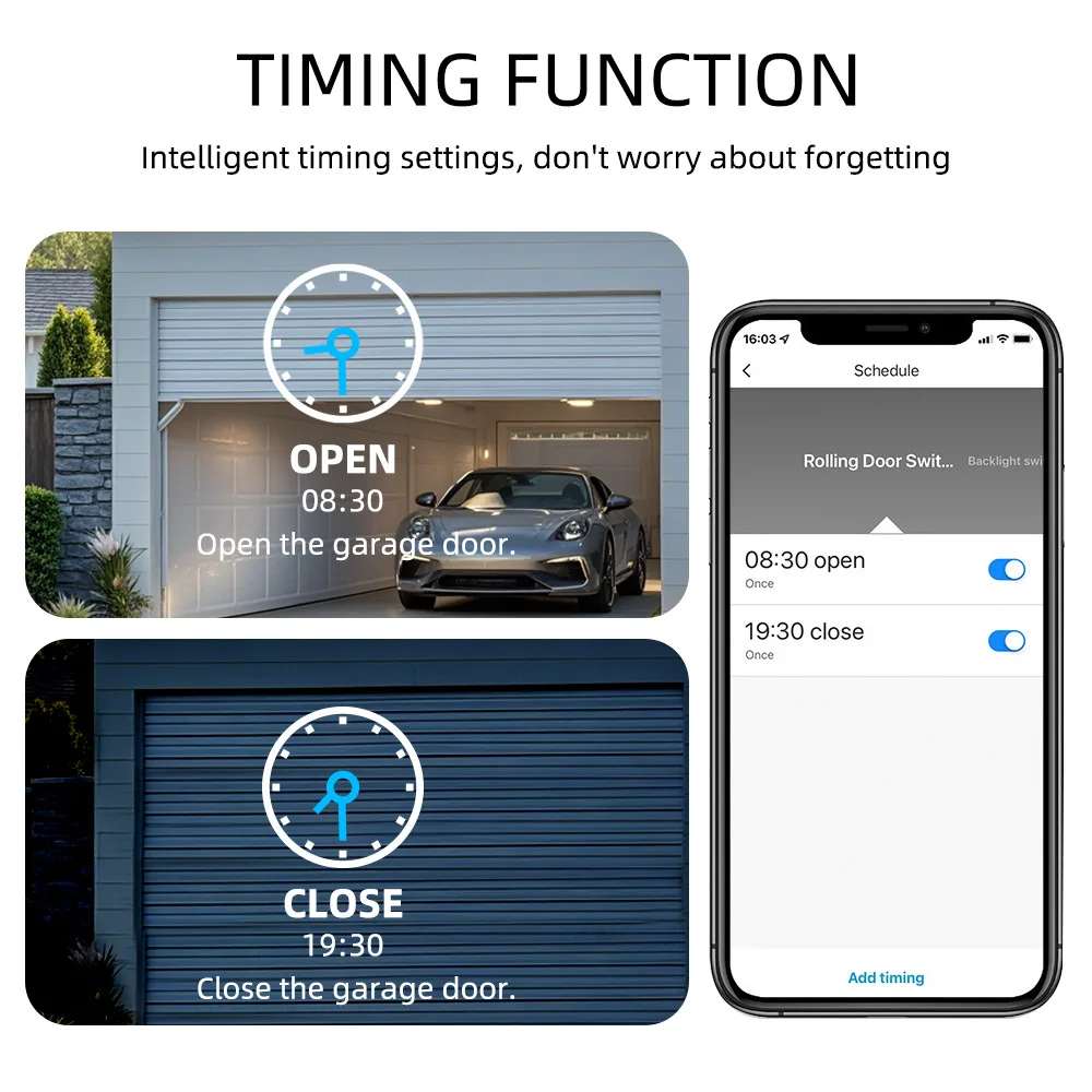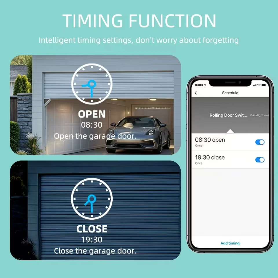 1.The Tuya Smart APP can remotely open/close the garage door,and view the historical open/lose records